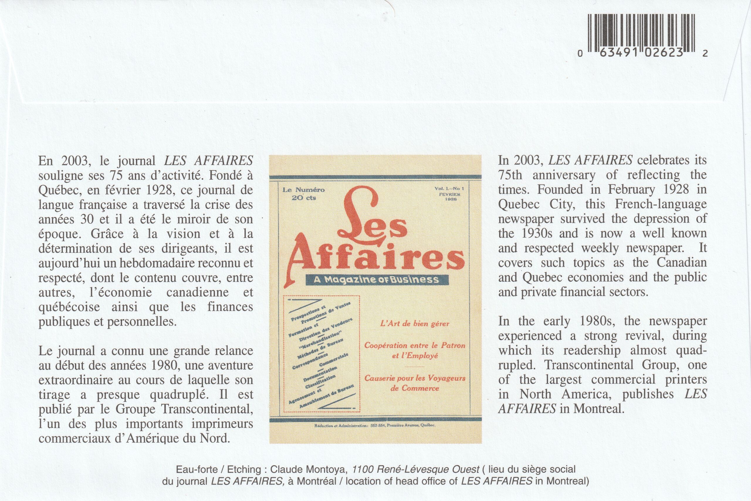 2003 Canada SEC Unitrade catalogue number S52 Les Affaires (1928 – 2003).