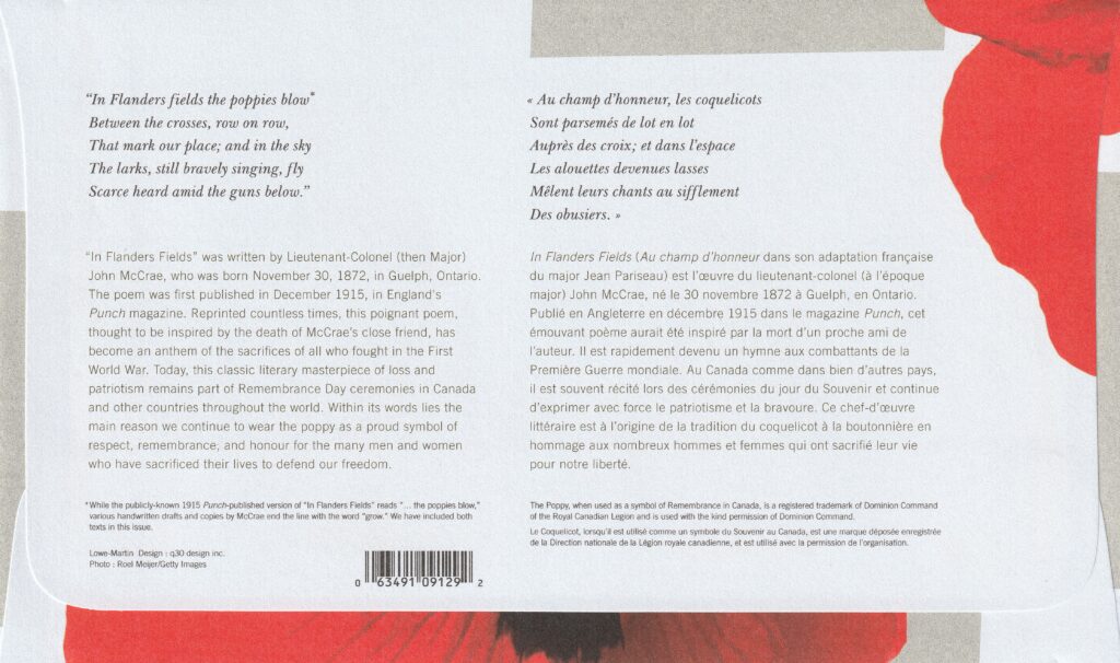 2015 Canada FDC Scott catalogue number 2836 In Flanders Fields.